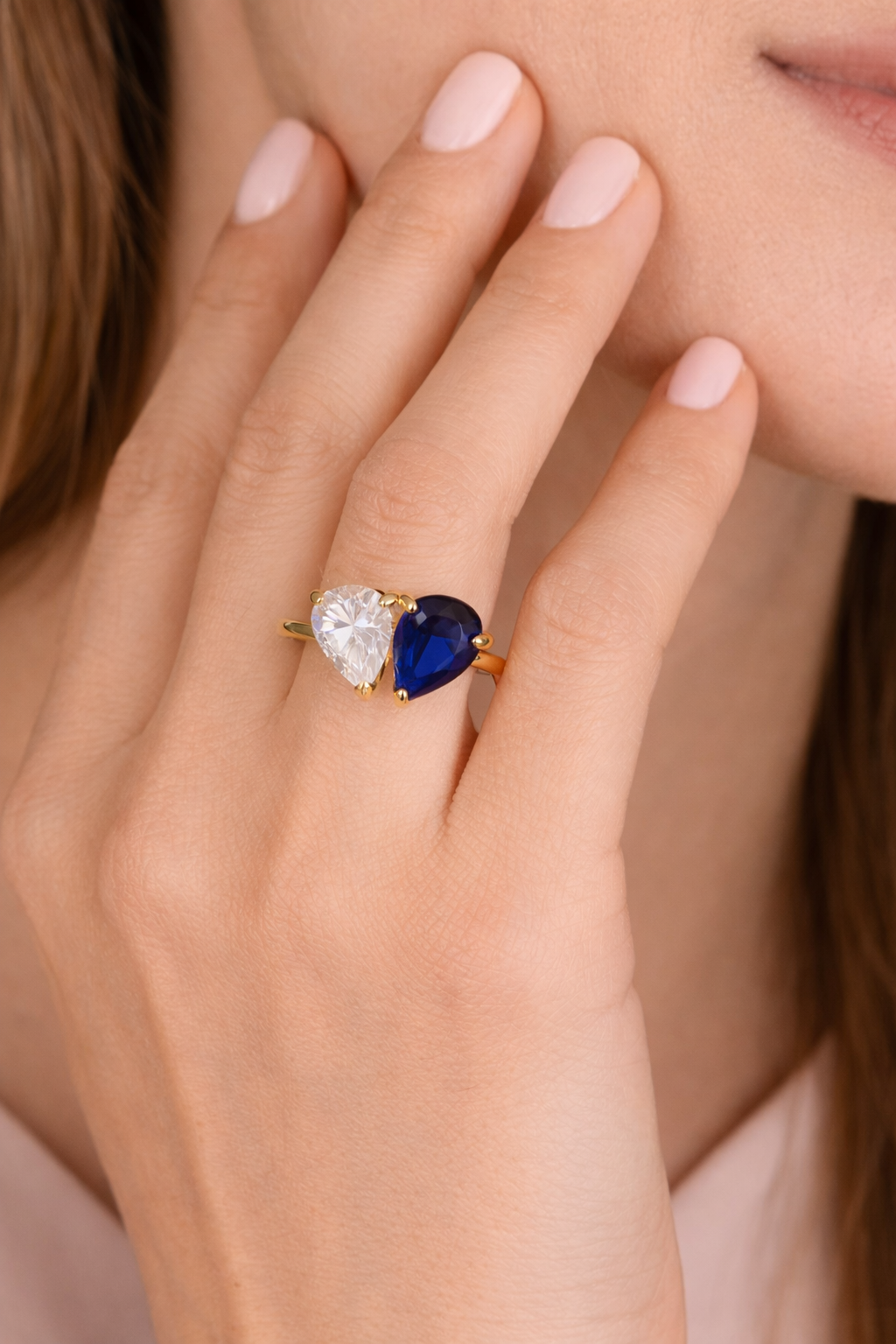 22KT Dual Pear-Cut Stone Open Ring For Women’s